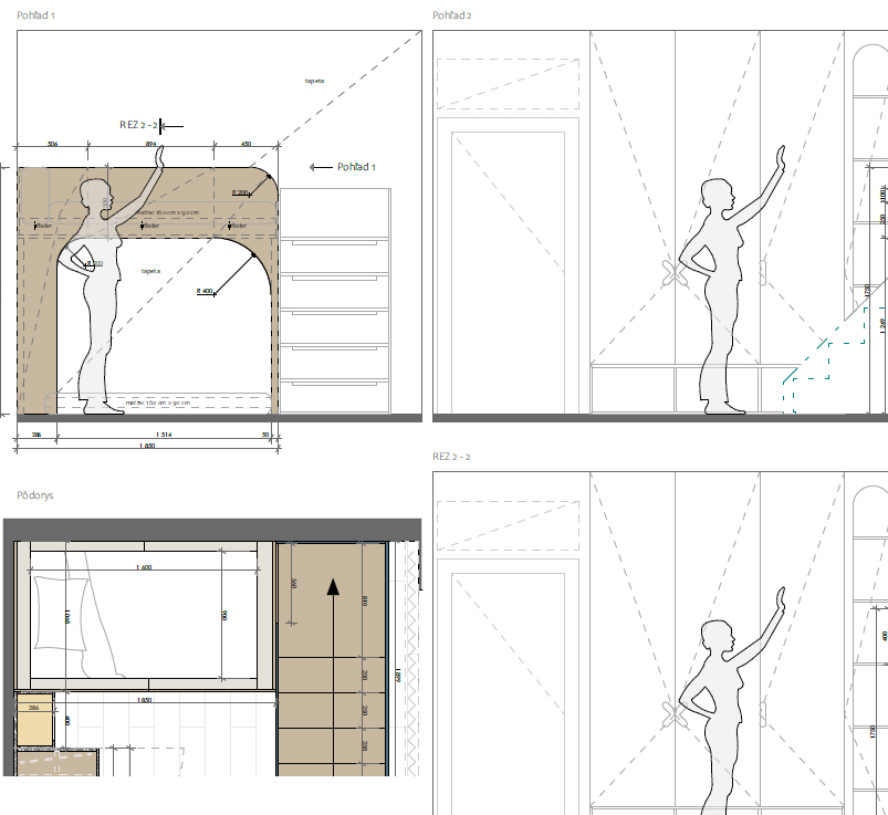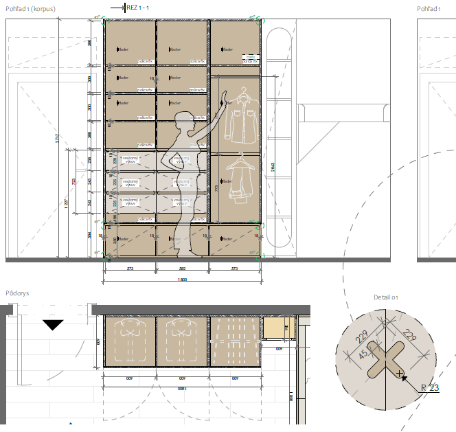 Výkresy slúžia ako presný podklad pre stolára, aby nábytok vznikol podľa vizualizácie a dohodnutej predstavy.